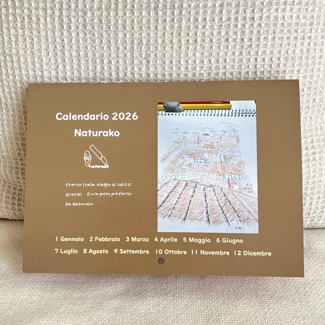 イタリア フィレンツェ旅のスケッチや水彩イラストを楽しめる壁掛けカレンダーです♪