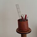 昨日、届きました。なかなかかわいいらしくって、 こないだの作品とは異なった趣きがあり、食卓テーブルになじんでます。削った色鉛筆が丁度いい感じで顔を出してくれました。 ありがとうございます!