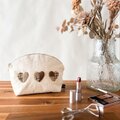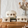 上品な印象になるようハートの大きさを調整し、手仕事のあたたかみが感じられるよう手縫いでステッチを入れています。