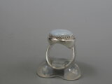 リングのサイズは12.5号、重さは15g、最大幅は23mm、手のひら側は9mm、金属部分は純銀です。