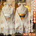 着物 ミニ丈 ワンピース ドレス 和ロリ 2部式作り帯 名古屋帯 リメイク 和洋折衷 洗える 化繊 単衣 MKW-34