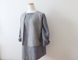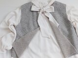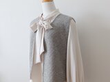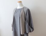 表側がグレー杢のモヘア混、内側がベージュのウール糸を二重に編んだショートベストです。