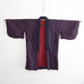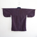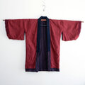 野良着|藍染 縞模様 木綿 着物 裏地バーガンディ ジャパンヴィンテージ|ハンドメイド・リメイク・古布好きの方にもお勧め