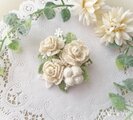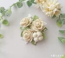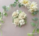 小さなアイボリーの薔薇やコットンフラワーをふっくらとかわいらしく見えるようにお仕立てしました。
