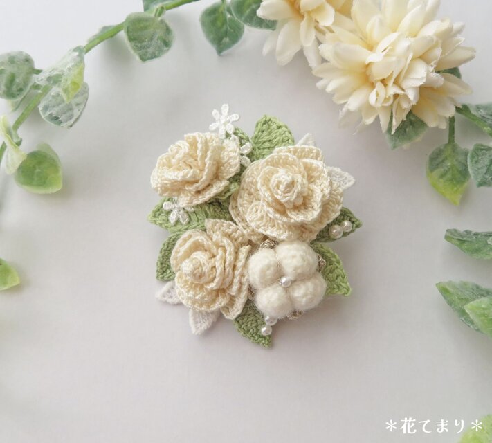 レース編み クリスマスブーケのブローチ~ivory~
