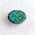 ターコイズのさざれをレジンで封じ込め、シンプルで小ぶりな帯留めにしました。
