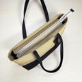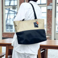 A4対応で通勤にも使いやすいシンプルトートバッグ halb:ベージュ×ブラック(コーデュラナイロン 撥水加工ナイロン素材)