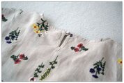 リネン100%贅沢総刺繍ポケット付きシンプルな大人可愛い五分袖ワンピース♪ -