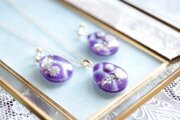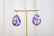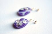 ドロップ型のレジンにお花を二輪咲かせた可憐で大人っぽいピアスです。