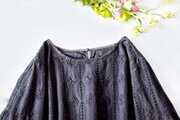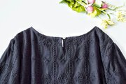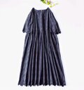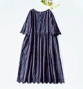 リネン100%贅沢総刺繍ポケット付きシンプルな大人可愛い五分袖ワンピース♪ -