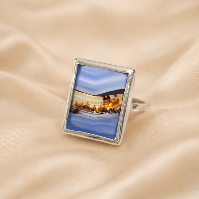 まるで大地の風景を切り取ったかのような模様が浮かぶ、ランドスケープアゲートのシルバーリング。