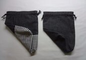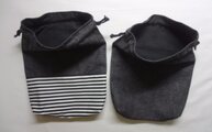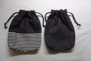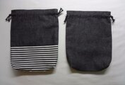 巾着袋【黒デニム・無地+黒デニム×黒白ボーダー】2点セット