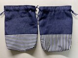 薄手の紺デニムの無地に、紺白ボーダー生地とストライプ生地を合わせて作成しました。