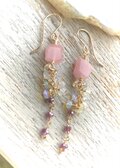 14kgf グァバクォーツとガーネットのロングピアス