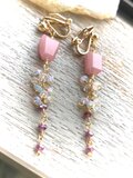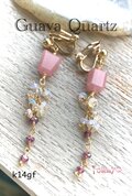 14kgf グァバクォーツとガーネットのロングイヤリング