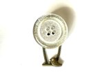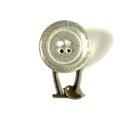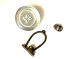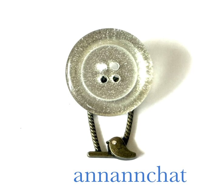 フランス製の 細かなシルバーラメの ビンテージボタン(直径約30mm 1980年代ごろ)と アメリカ製の 小鳥のモチーフで 気球に乗った小鳥のピンブローチを作りました。