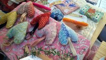 いろんな色の糸を使って縫いました。