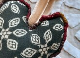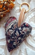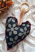 布フェルト ハートのチャーム 黒色・草木染め〈布フェルト キーホルダー ハート インド綿 ブロックプリント 〉