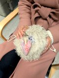 表はフェルトで、よーく見るとインドのブロックプリントという生地がパッチワークされているんですよ。くしゅくしゅとした素材の表情が面白いんです。