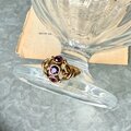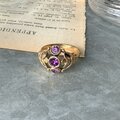アメジストカラーラインストーンがアクセントになった、ゴールドトーンリング。