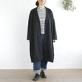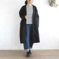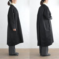 薄手で裏地のない一重仕立て、身幅が広いコクーンシルエットのコートは、春先にはTシャツ、秋冬はニット、さらに寒い日にはダウンを着たり、ドルマンスリーブなど色々なデザインのインナーと合わせてもストレスなく、綺麗なシルエットが保てます。