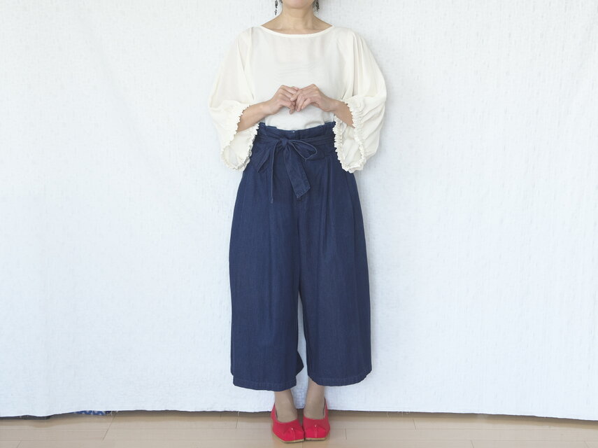 広がらないように収めた裾は、ショート丈なのでインしなくてもスッキリまとまります。