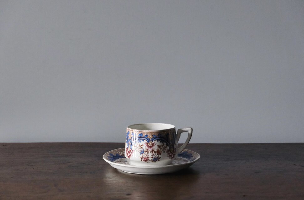 Boch Frères Keramis OLGA 手彩色 ショコラ カップ & ソーサー アンティーク 0502326