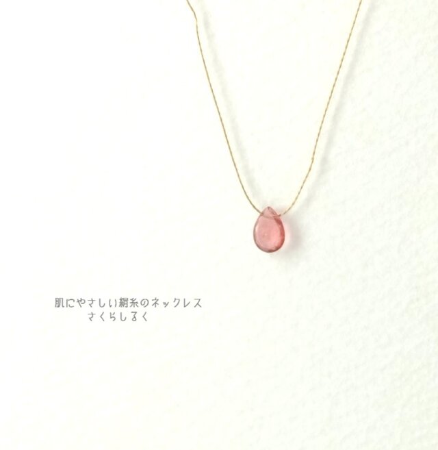 G277-中間③【10月の誕生石ピンクトルマリン】14kgf 肌にやさしい絹糸のネックレス 糸の色&長さえらべます