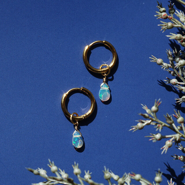 贅沢な大粒の一粒オパールピアスは毎日にでもお守りにしたい。