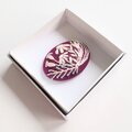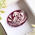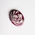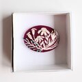 サーモンピンクの地に黒い花の刺繍、ありそうでなかったこの色のとりあわせ、すてきなブローチでした。