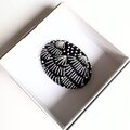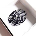 サーモンピンクの地に黒い花の刺繍、ありそうでなかったこの色のとりあわせ、すてきなブローチでした。