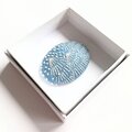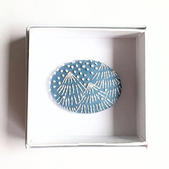 少し深みのあるの水色のコットン地に3本のもみの木を丁寧に刺繍しました。