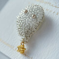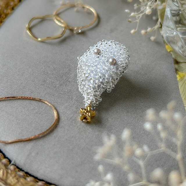 透明ビーズがきらめくこのお化けのブローチは、ハロウィンシーズンにぴったりのサイズ。