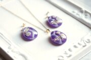 ドロップ型のレジンにお花を二輪咲かせた可憐で大人っぽいピアスです。