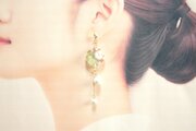小ぶりなレジンとコットンパールがゆらゆら揺れるさまが優雅です。