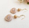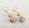 アンティークな雰囲気が漂うピンクのハート型のチェコビーズに、マットゴールドのビーズを合わせた上品なピアスです。