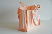 『秋に香る金木犀のような鮮やかなカラーのストライプ。ハンドプリントの素朴感が可愛いバグルー生地』