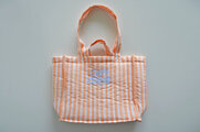 目にも鮮やかな美しい色彩、繊細ながら温もりと素朴さを感じさせるハンドブロックプリント。コットン100%素材のキルティングトートバッグはオールシーズン大活躍。