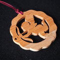 丸みを帯びたフレームと羽ばたく姿は、糸鋸ならではの柔らかな表現。木目の自然な表情と相まって、機械加工では得られない温もりが宿っています。