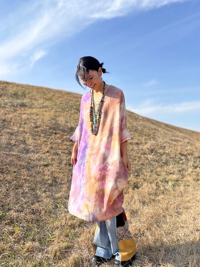 タイダイ ワンピース パープル×ベージュ Hippies Dye最新作 HD24-90