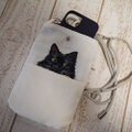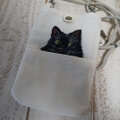 コットン素材で作った、うちの子スマホポシェット(黒猫ちゃん)