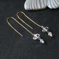 大粒のハーキマーダイヤ(※)をメインにレインボームーンストーン&淡水パールを組み合わせたアメリカンピアス。ハーキマーダイヤは透明度が非常に高く輝きがとてもきれいです。