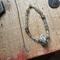*花崗岩とジャワビーズのブレス。@古いグラニット+ジャワビーズ4色+フランスデッドストックビーズ+真鍮モチーフビーズ