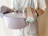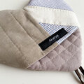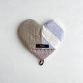 重量のあるお鍋にも対応できるようキルト生地3枚とキルト芯2枚を挟み、しっかりと厚みがありながら、掴みやすいのはハートの形だからこそ。