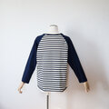 後ろ身頃は生成りにネイビーの天竺ニットボーダー、
