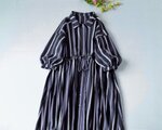 青と紫の縞柄がちょっといいです。早速着てみました。私には、長いようですが、裾を少し折って着てみようと思います。ありがとうございました。