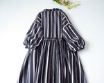 リネン100%贅沢総刺繍ポケット付きシンプルな大人可愛い五分袖ワンピース♪ -