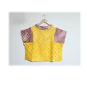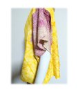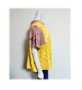 鮮やかな黄色とワイン色系の総絞り羽織をリメイクした、