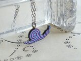フランスヴィンテージ かたつむり/水色・紫うずまき Silverトーンネックレス