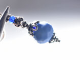 多面体ロシアンブルーと蓮華シルバー、ブルービーズの片耳ピアス